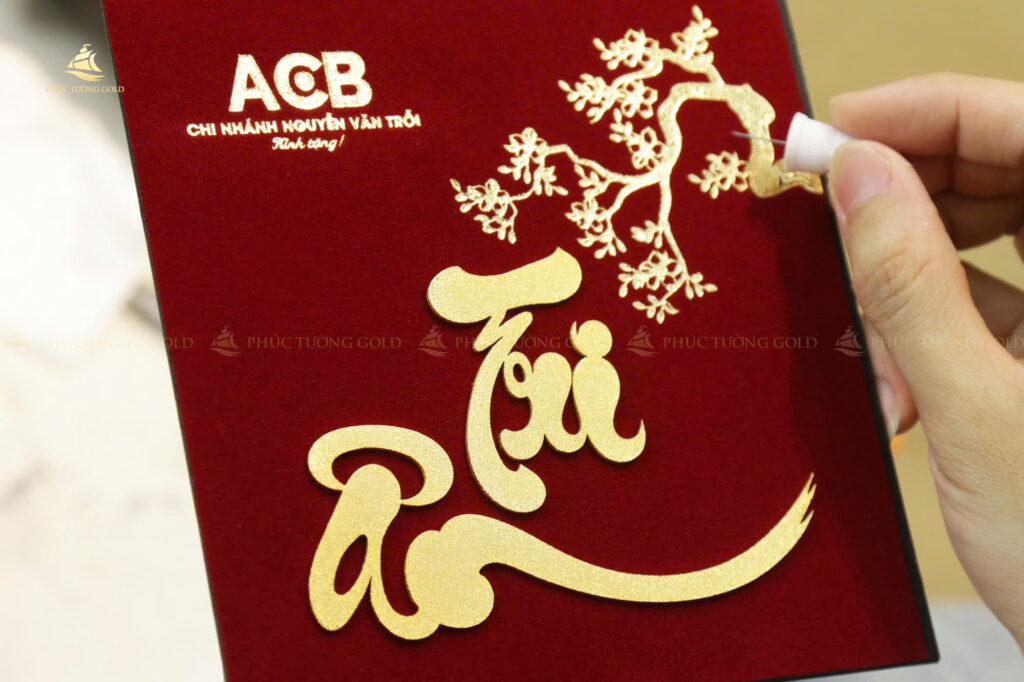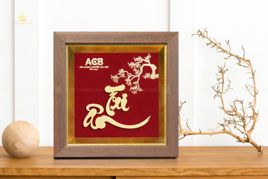 Phúc Tường Gold vinh dự đồng hành cùng Ngân hàng ACB chế tác Tranh chữ “Tri ân” mạ vàng 24K. Món quà sang trọng gửi gắm lời chúc thành công và trí tuệ trên “hành trình vươn tới đỉnh cao”.
