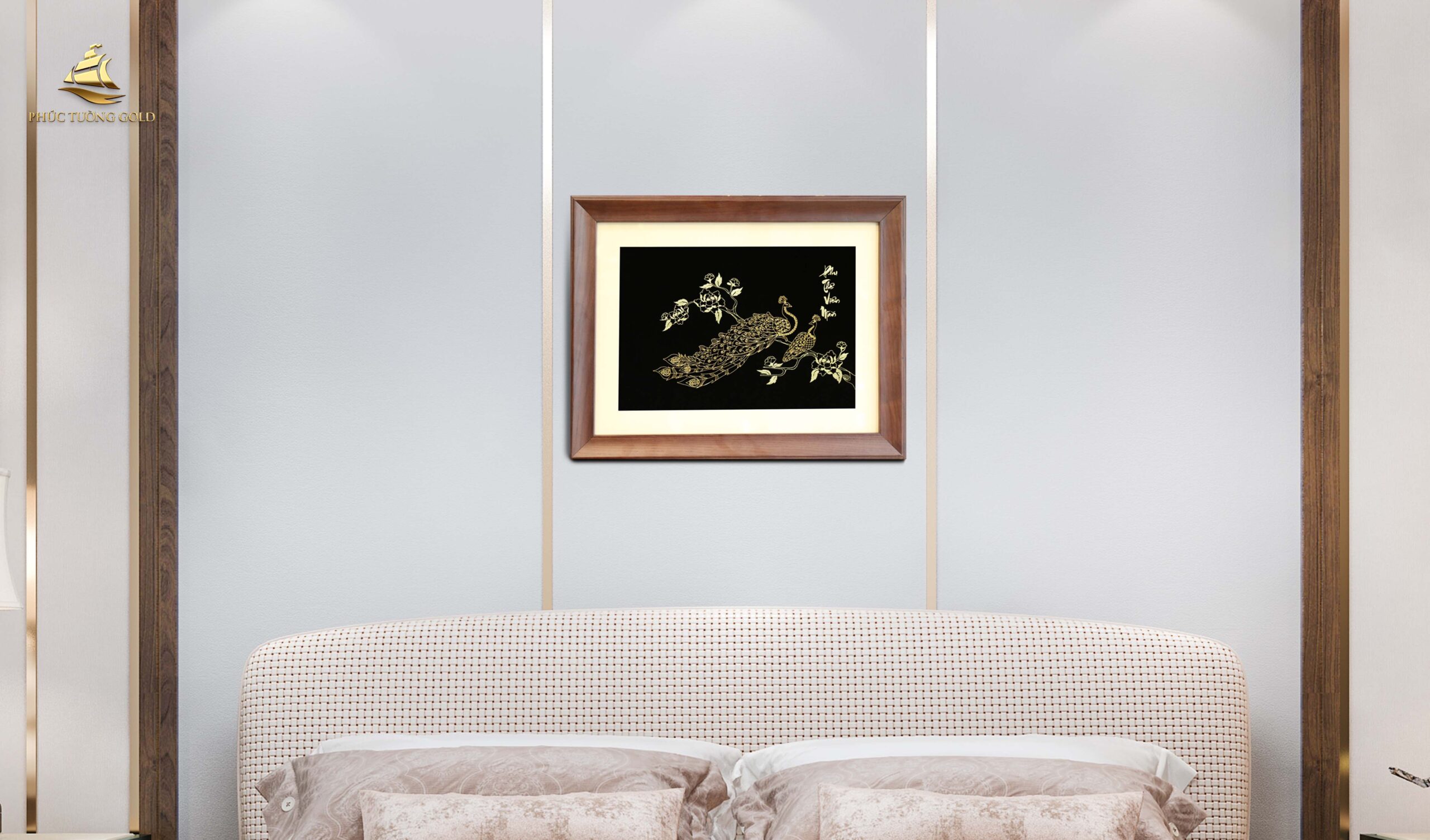 Tranh đôi chim công & hoa mẫu đơn mạ vàng 24K do Phúc Tường Gold chế tác là tuyệt phẩm hội tụ những giá trị nhân sinh cao quý: hạnh phúc, sức khỏe và tiền tài. Sự kết hợp giữa vẻ đẹp quyền quý của chim công và sự vương giả của hoa mẫu đơn không chỉ mang đến sự hòa thuận, sung túc mà còn tượng trưng cho giàu sang, thịnh vượng và sức khỏe bình an. Đây là món quà ý nghĩa trong các dịp cưới hỏi, kỷ niệm yêu thương, chúc phúc lứa đôi, tặng sếp hay những người thân quý.