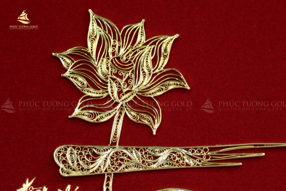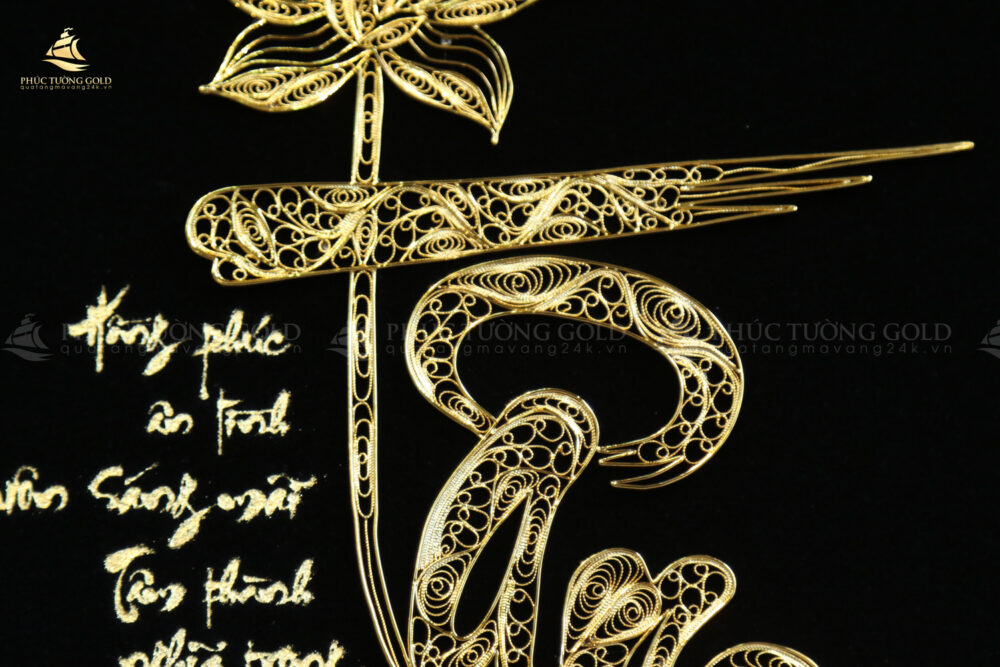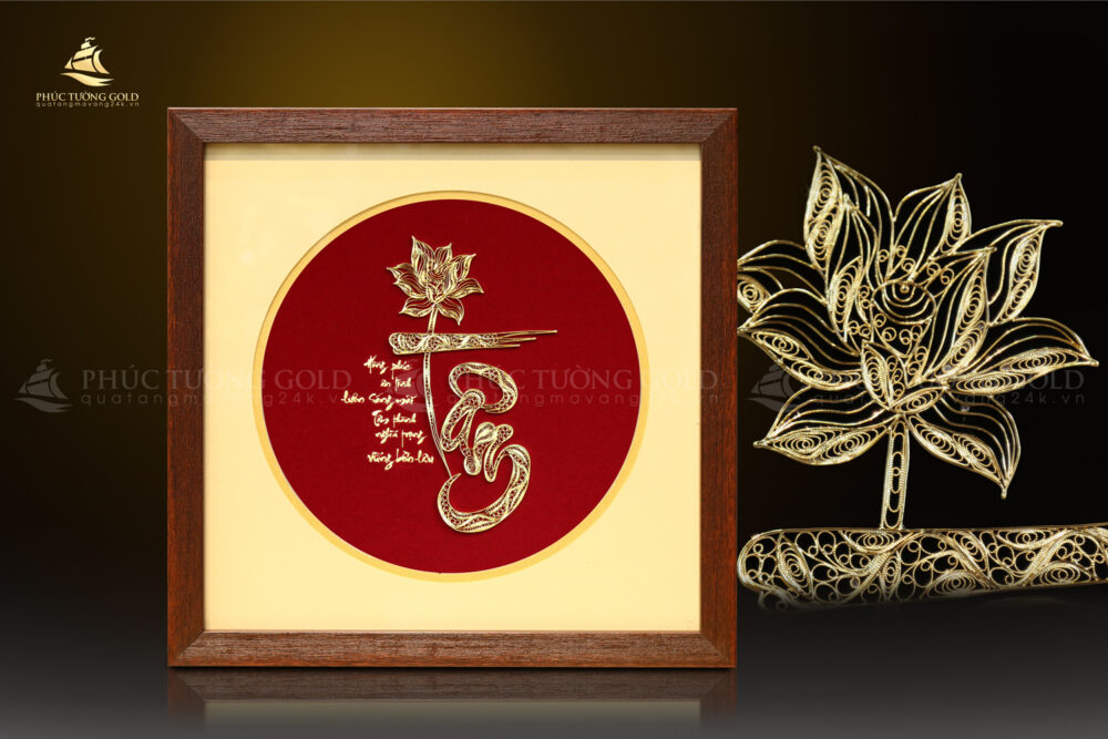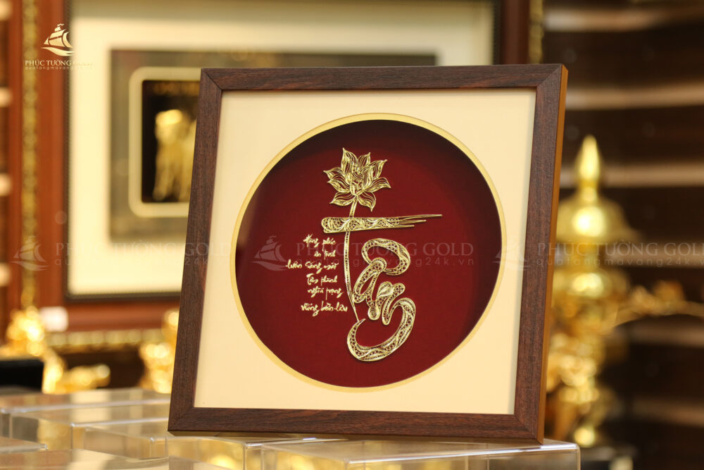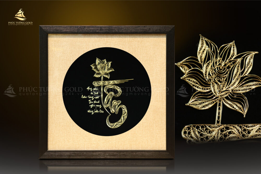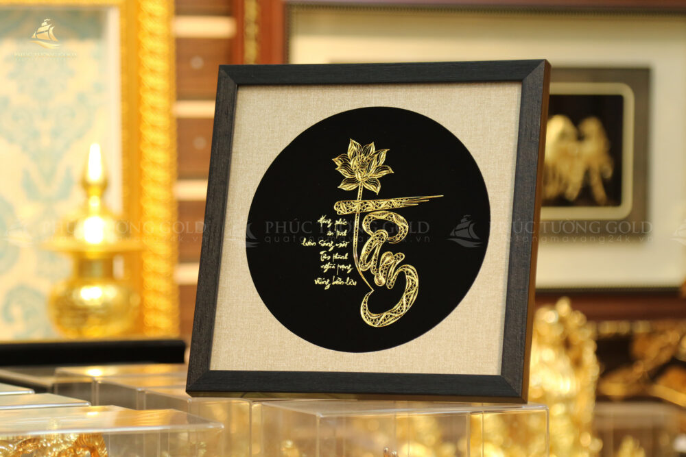 Thấu hiểu giá trị cao quý ấy, các nghệ nhân Phúc Tường Gold đã gửi gắm trọn vẹn tâm huyết vào bức tranh chữ “Tâm” mạ vàng này. Hình ảnh hoa Sen thanh khiết, quốc hoa của Việt Nam, được kết hợp hài hòa với nét thư pháp uyển chuyển của chữ “Tâm”, tượng trưng cho sự trường tồn, thanh cao, sức mạnh trí tuệ và những phẩm chất tốt đẹp mà người quân tử hướng đến.